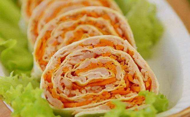 Этот рецепт лаваша с корейской морковью советую занести в свою кулинарную копилку. Готовится такой фаршированный лаваш проще некуда, а подать можно и гостям, и на семейный стол, и с собой взять вместо бутербродов хоть на работу, хоть на пикник.
