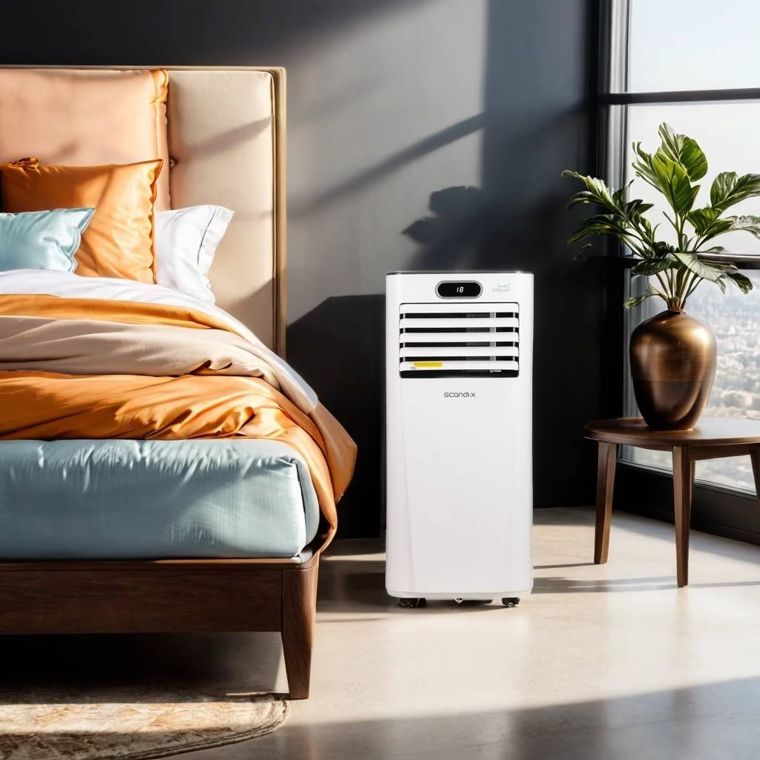 І відкриває наш огляд доволі нестандартне рішення — мобільний кондиціонер Scandix SC7000. Це підлоговий варіант кондиціонера, який можна вільно переміщати не лише по оселі, а й навіть легко перевезти, якщо потрібно, до іншої квартири.