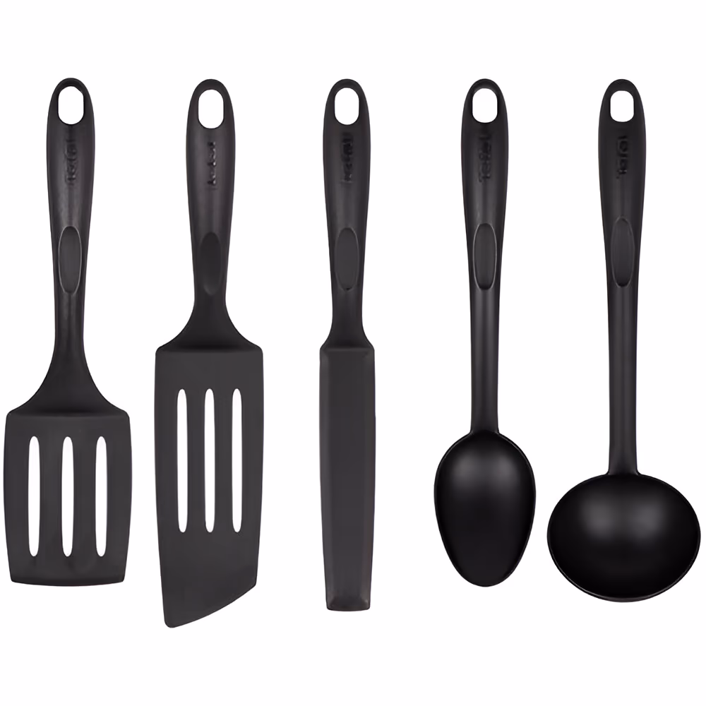 Что нужно, чтобы ежедневное приготовление стало более быстрым и упорядоченным. Качественный кухонный набор! Предлагаем обратить внимание на Bienvenue от Tefal, который объединяет пять самых подержанных аксессуаров, закрывающих большинство потребностей при работе с горячими блюдами: ложку, черпак, угловую лопатку, удлиненную лопатку и отдельную лопатку для блинов.